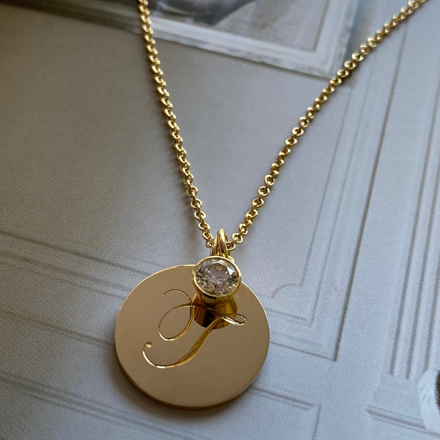 A Simple Initial, with a Date on the Back. This is minimalist, with a nod to Victorian design. Timeless and easy to wear every day - Perfect!